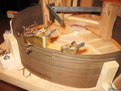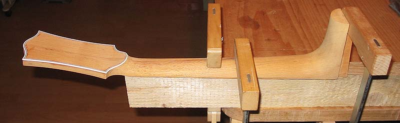 Fixing & glueing the Headblock. Preperation for installing the curved sides |